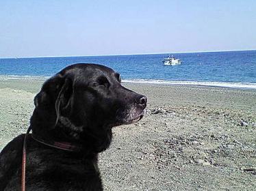 花粉症が始まる前に・・と思って、風が冷たかった昨日、ラビイと海辺のお散歩をしました。ところが、海岸に下りる階段の途中で、突然犬が変わったかのようにダッシュ!海へ海へと突進~っ?! ラビイに一体何が?磯の香りに野生を呼び起こされたのでしょうか?走り回って少し落ち着いてから・・
