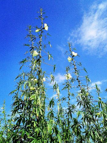 お昼過ぎまではとても良いお天気でしたから・・ちょっと出かけるついでに、川沿いの田園地帯まで行ってきました。先月まであまりの暑さに、すっかり足が遠のいていましたが、今日のお天気はさわやかで、気持ちよくお散歩できました。町の小学生が栽培・観察する「ケナフ」です。こんなに大きく育っています。久しぶりのひょうたん池です。