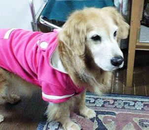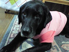 Tシャツ姿をアップしてみました。ラビイは首が太いので、Tシャツの襟が小さいのは苦しそうだし、大きいのは広がっちゃうし、とにかく首周りがキマラらないのです~今日着ているのは、キーネックのTシャツです。