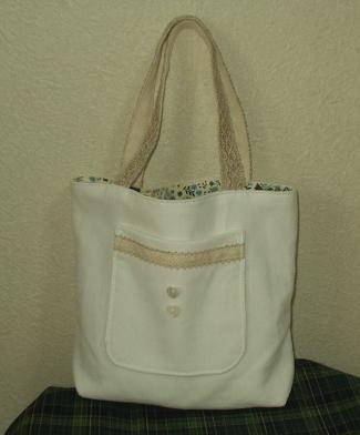 お久しぶりです。 毎日があっと言う間に過ぎていきます。 師走でもないのに、これが12月になったらどうなるんだろう・・・? 3日土曜日、フリーマーケット。今回はダンナ主催?で、家庭の不要品オンリーの出店でした。午後は子どもたちのバイオリンのグループレッスンがあったので、ダンナを置いて子どもたちと会場へ。今年はうちがクラス幹事なので、会場のセッティングや、休憩時のお茶とお菓子の用意など何かとバタバタ。 夕方フリマを終えたダンナと合流、売上は3000円ちょっとで、晩ご飯の回転寿司代で消えました。 4日日曜日、長女の保育園の収穫祭。畑まで自転車で30分ほど走り、里芋掘り、ミカン狩り、タマネギの植え付け、そしてお昼は鍋一杯の豚汁。帰りはお友達と公園でひと遊び。 実りある連休でしたが、体はボロボロ。 月曜日は体が鉛のようでした・・・。 そんな中、ぼちぼちマイペースで作ったのが、委託品のミニバッグ。 冬仕様ということで、コーデュロイで2種類作ってみました。 一つ目、白の細い畝のコーデュロイで、作りました。レースの持ち手とハート型の貝ボタンがチャームポイントです♪ 裏布は、ずいぶん大昔の、中厚のコットンプリント生地。ブルーの小花と花かご柄です。お財布と携帯、エコバッグを入れてお買い物用。白のコーデュロイがなにげに上品なバッグです。 もう一つは、黒い太畝の縦長バッグ。 バッグ本体は1~2年前作ったものですが、ちょっと寂しいのでポケットに手編みの雪の結晶モチーフをニードルでさくさくフェルティングしました。 縦長なので、保護者会のママの上履きや、お稽古事のマイスリッパなど、大人のルームシューズ入れにぴったりだと思います。 明日はその委託ショップの作家さん達の交流会です。 ちょっぴりドキドキ、楽しみです♪ お店はコチラ→心店 店長さんのブログ