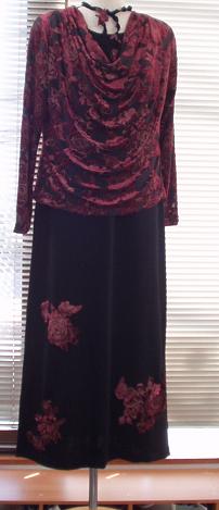 黒いウールのノースリーブワンピと、オパール加工のドレープトップスです。