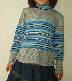 はっきりしたブルーと黒のボーダーが、今まで子供服にはどうかな~と思っていましたが、もうすぐ6歳になる年長さんの年齢になると、下はパンツでもスカートでも、けっこうシャープな印象で着こなせます。