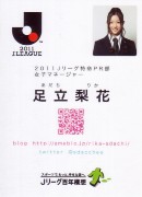 J.LEAGUE OFFICIAL TRADING CARDS 2011 2nd SERIESPROMOTION CARD2011Jリーグ特命PR部女子マネージャー足立梨花カードを入手しました。『Jカード2011 2nd/足立梨花プロモーションカード』です。『1st』と表面のデザインは同一になりますが、裏面が『2nd』発売の告知になっています。↓1st版です。 J.LEAGUE OFFICIAL TRADING CARDS 2011 1st SERIESPROMOTION CARD2011Jリーグ特命PR部女子マネージャー足立梨花↓昨年度版です。 J.LEAGUE OFFICIAL TRADING CARDS 2010 2nd SERIESPROMOTION CARD2010Jリーグ特命PR部女子マネージャー足立梨花岡山で直接頂き、前日の広島でA様に貰って頂きました。→サイトマップ→三本の矢本館