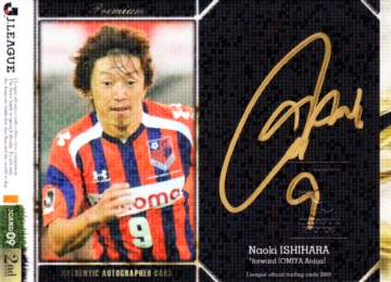 J.LEAGUE OFFICIAL TRADING CARDS 2009 2nd SERIESPREMIUM AUTOGRAPHED CARD#PSG4 石原直樹入手熱望カード2枚目は、『Jカード2009 2nd SERIES/石原直樹プレミアムサインカード』です。→SANFRECCE HIROSHIMA COLLECTION 2石原選手がサンフに移籍してきた当初から探していました。若干厳しい値が付いていましたが、10枚しか無いカードなので、思い切って入手しました。寿人選手のプレミアムサインと並べると中々良い感じです!PS.本日職場の後輩と書店でカードを購入した(後輩は私に触発されて初購入)のですが、後輩が飛んでもないカードを引き当てました!数年カードコレクターをしている私ですら、こんなカード引いたことがない。そんな羨ましいカードとは…。また明日アップしたいと思います。→サイトマップ→三本の矢本館