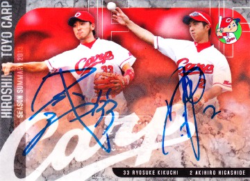 HIROSHIMA TOYO CARP SEASON SAMMARY 2013AUTHENTIC DUAL SIGNATURES#No.AS-KN 菊池涼介&東出輝裕カードを入手しました。『広島東洋カープカードセット"SEASON SUMMARYY 2013"/菊池涼介&東出輝裕コンボサイン』です。→HIROSHIMA TOYO CARP COLLECTION青ペンサイン版は5枚限定。コンボサインは初入手になります。→サイトマップ→三本の矢本館