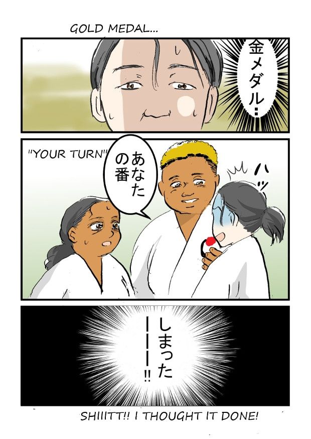間が開いちゃったので、これが減点対象になったのかな。もっとちゃんとやってれば金メダルだったのかなー←未練がましい。