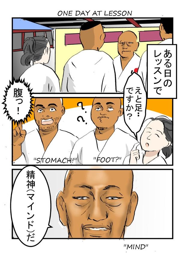 師範の言葉をうまく説明できてるか自信がないですが、要は肉体だけを鍛えても戦いの場では数分しかもたない。最後に残るのは精神力だから、精神を鍛えるのが大事、とおっしゃいました。