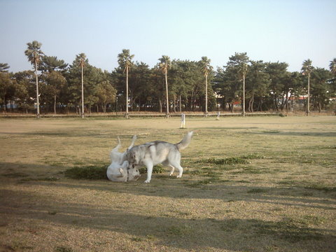 水曜日、雨の日をねらってランの狂犬病の注射を・・・ついでにフィラリアの薬・・・注射を打った後は、あまり運動させてはいけないとのことだったので、雨の日に・・・その日は、病院休みの日・・・曜日を間違えていた・・・・病院の前で電話をすると、快くいいですよとのこと(20分ぐらい待っ)・・・ ランの行っている病院は、そんなに大きい病院ではない、病院を嫌がようでもなく、病院のドアが開くと一目散に先生のもとへ・・・注射をして おやつをもらって・・・昨日の夕方の散歩・・・カメラを持ってこなかった、以前の写真・・・はなちゃん、まりもちゃんと遊ぶ・・・・・・ はなちゃん ・・・・・・ まりもちゃん ・・・・・・ 今朝の散歩 ・・・・・・ 遊びにあきてくると、ディスクで一人で遊び始める ・・・ 遊びの終了・・・・・・ 帰るよと声をかけると ディスクを持ってノコノコと ・・・