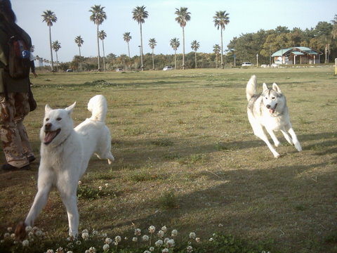 昨日の夕方の散歩・・・いつものように はなちゃんと遊ぶ・・・写真をたくさん・・・・・・ そこへ 可愛い お友達 ・・・ ここでデジカメのメモリーフル・・・お腹いっぱい遊んで 夜は爆睡状態・・・いっぱい楽しい夢でも見ているようでした・・・寝ているのに、時々 キャンとか ワンとか・・・