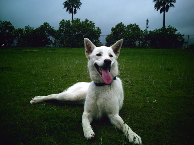 昨日の雨があがり、少し寒いが気持ちのいい朝・・・・・・いつものコースでいつものように 遊び場へ、昨日は雨、トイレだけの散歩だったので今日は おもいきりボールとフリスビー・・・・・・ 遊び終わって 一休み ・・・・・・ 今日の チー ・・・チーが来て10日 何とか元気で育っている・・・