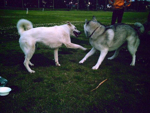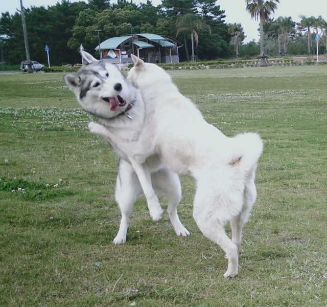 ・・・ 昨日の夕方の散歩 はなちゃんと 遊ぶ ・・・・・・ 相変わらずの肉弾戦 ・・・・・・ 一瞬一瞬の顔は 恐いような ・・・・・・ はなちゃん ・・・・・・ その 舌 美味しそう なんて ・・・・・・ 休憩中の顔は 穏やかで 満足げ ・・・・・・ はなちゃんの オヤツをもらって ・・・・・・ 今日のチー ・・・相変わらずの食欲・・・ すこし呼吸が速いようだが 大丈夫のようだ・・・明日から天気が悪そうなので 今日は水浴びさせて 日光浴でも・・・