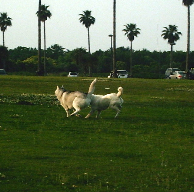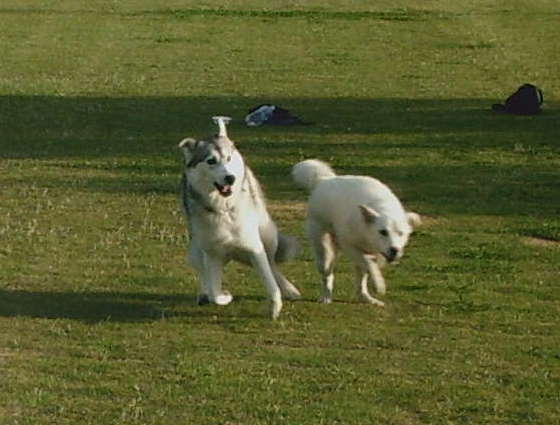 夕方の散歩、少し遅くなった・・・散歩の出発がおそくなった(仕事で)、いつもの遊び場へ・・・遠くにはなちゃんの帰る姿・・・ はんちゃんゴメンネ・・・そしてランもはなちゃんと遊べなくて・・・しょうがない、ボールとフリスビーで遊ぶ・・・朝の散歩、気持ちのいい朝、そんなに寒くない・・・いつものようにいつものコースで、途中太郎君と出会う・・・そして、遊び場へ・・・今日の夜よりランとチーの距離をちぢめてみようと思う・・・今のチーの位置は、籠を箪笥の上これをランのいる床の上に・・・どうなるかな???昼間のチーは玄関のランのそば、だいぶ慣れてきているので、大丈夫だとは思うが・・・
