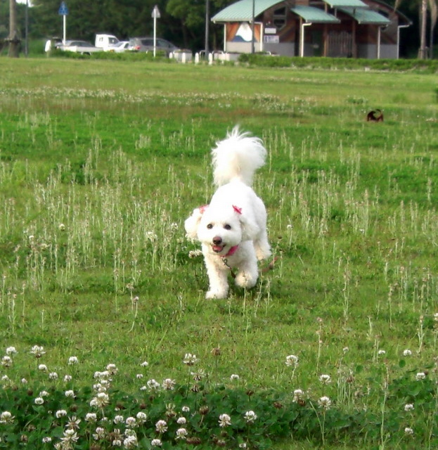 ・・・ チーの水浴び ・・・夕方の散歩・・・プリンちゃん(愛称プーちゃん) と プーちゃんのお母さん(リンゴちゃん? だったっけ)・・・ プーちゃん ・・・・・・ 右 プーちゃんのお母さん ・・・リンゴちゃん (10歳)プーちゃんのお母さん・・・以前は ランが近づくと、吠えていたリンゴちゃん・・・ほかの犬との交わりを嫌がっていたのに最近は自分からよって来るようになりました・・・飼い主さん ほかの犬との交わりは一生ないと思っていたそうです・・・ でも 今は全然大丈夫です・・・小さな お友達の後は、パンちゃん・・・・・・ そして ラン ボールとフリスビー ・・・・・・ チーの水浴び もちろんランが監視役 ・・・・・・ ランがチーの水浴びの水を ペロペロ ・・・梅雨・・・晴れてる時には 思い切り遊ばせてなくては・・・
