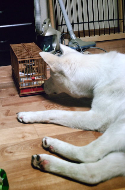 トイレは散歩のときに・・ラン自身のルール、本能、それとも躾け???雨、雨、雨の日々・・・散歩がつらいな、ランも遊べなくてストレス溜まってるかな・・・朝、夕いつものコースを散歩するのだが、遊び場へ行って遊べない・・・・・・ 夜、ランとチー ・・・白いベットが乗ってみようかな ・・・急に立ち上がらないで ・・・ うっ なにコレは ・・・・・・・・・・・・・・・・・・・・・・・・・・・・・・・・・・・・・・・・・・・・ランはトイレを散歩のときに済ませる、これはトイレを外でと躾けたと私は思っていたが、違っているようだ・・・トイレを散歩のときに済ませるのは、ラン自身の決めたルールのように思える・・・ランが小さいとき、2階のベランダでトイレをペットシートで済ませていたのだが、ウンチの時には、必ずベランダから出してと、しきりに窓に飛びついていた・・・このときから、ランが自分のテリトリーは汚したくないと言っていたのかもしれない・・・これは本能かな・・・ランが我が家に来て、1年と2ヶ月あまり・・・ランには自分で決めたルールがいくつかあるようだ、このランのルールがすべて私に理解できたら、もっとランの行動が理解できると思うのだが・・・これは、ランの一つのルールだと思うが、いつも遊んでいる、遊び場ではウンチを絶対しない、ウンチのときには、こっそり遊び場を出て行く・・・この場所はランにとっては汚したくないテリトリーの一つ?・・・まだいろいろランのルールがあるようだが、まだ私には理解できてないようだ、言葉を話せないランが、いろいろなサインを出しているのかもしれない・・・もっと注意深くランを見てあげなければいけないのかもしれない・・・ということは、すずめのチーにもルールがあるのかも・・・