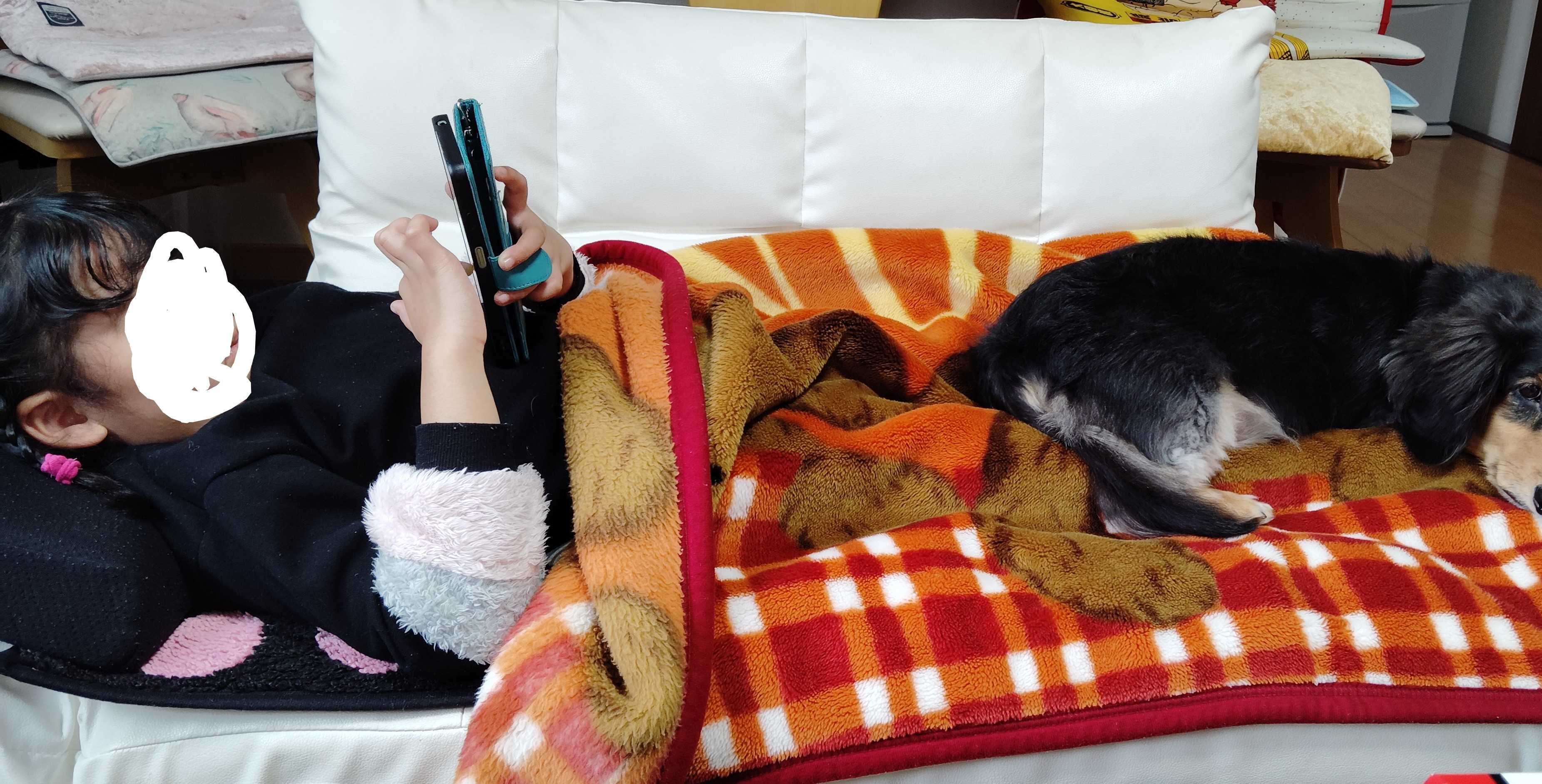 実家にいます娘と実家の犬めっちゃ、くつろいでます