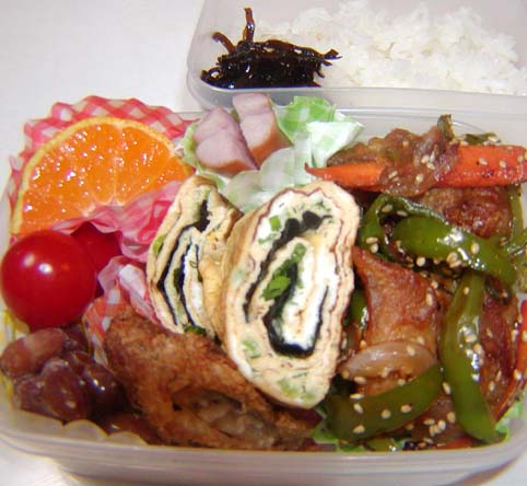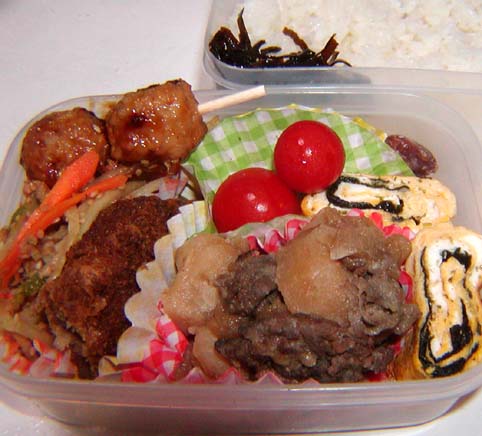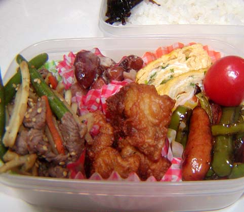 回鍋肉、筑前煮、ウィンナとインゲンの肉巻き、卵焼き、唐揚、紫蘇昆布、プチトマト筑前煮は冷凍和風野菜を使って煮た。簡単だけど歯ごたえが足りないなぁ・・・ 長女の実習も本日が最終日だ。・・・ってことは、お弁当作りも本日で終了。はぁーっ、これまで何年も何年も充分作ってきたのだから、もういいでしょう。ここらへんで許してもらうとしよう。