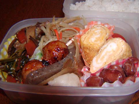 我が家のトラブルメーカーが嵐のような勢いで帰って来た。今日から2週間、うちから実習に通うことになったので、久々に早起きしてお弁当を作った。卵焼き、里芋と手羽先の煮物、金平、空芯菜と豚肉のオイスター炒め、金時豆煮、鶏つくね団子、プチトマト最終日まで坦々と辿り着きたいものだ。