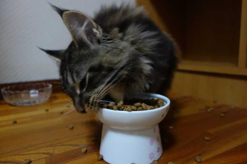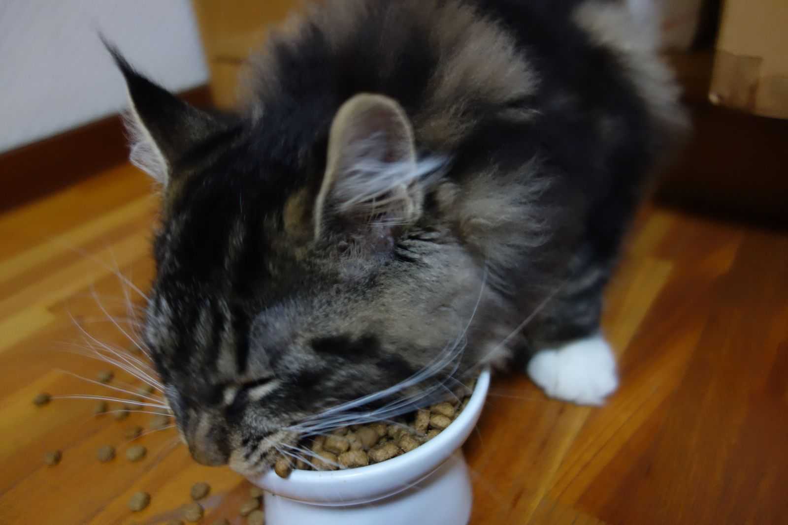 流石大型猫種だけあって食欲凄いにゃん。めちゃこぼしてますがあとで拾って茶碗に戻します。ロイヤルカナン キトン 猫用 2kg [正規品]