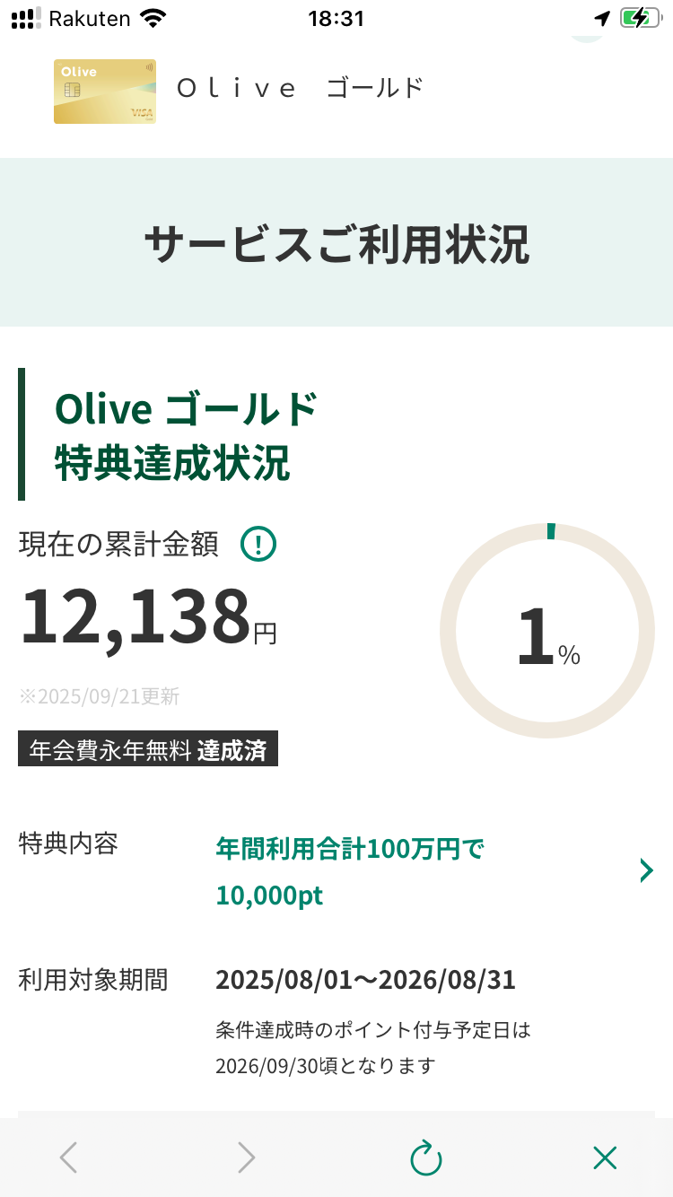 どうも鈴木さんです。最初に住んでいた経済圏は楽天でしたが度重なる改悪で3年前にSBI(TPOINT)へ移住していましたが最近またいいニュースが出ましたね。楽天は通信銀行証券市場カードと結構なヘビーユーザーでしたがプレカードや市場の大きな改悪で泣く泣くSBIへ鞍替えしました。今ではSBI証券YモバYahooショッピングolivePaypayとどっぷり移住先に依存状態です。ここは楽天ブログなので楽天ユーザーが多いと思いますが移住先としてソフトバンク経済圏お勧めですよ。4年間の総獲得ポイントも楽天47万に対してPaypay42万とだいぶ接近してきました。特にPaypayとoliveの緊密な連携は使いやすさや使える場所の多さからまさにこれからって感じです。連携に向けoliveでキャンペーンやってたので通常年会費5,500円掛かるolivegoldに永年年会費無料でクラスチャンジしときました。三井住友Gとolivegold2枚の年会費11,000円分が永年無料なのでキャンペーン中のこの機会にぜひ皆さんも移住を検討してみてください。達成しやすいローン契約や保険契約以外の各種特典だけでも有名コンビニなど特約店最低10%ポイント還元はとても魅力的ですよ。※8月にolivegoldに変更手続きして9月21日に永年無料確定しました、昨日まで5,500円引き落とし案内出てたので手続きミスったのかと心配でした…
