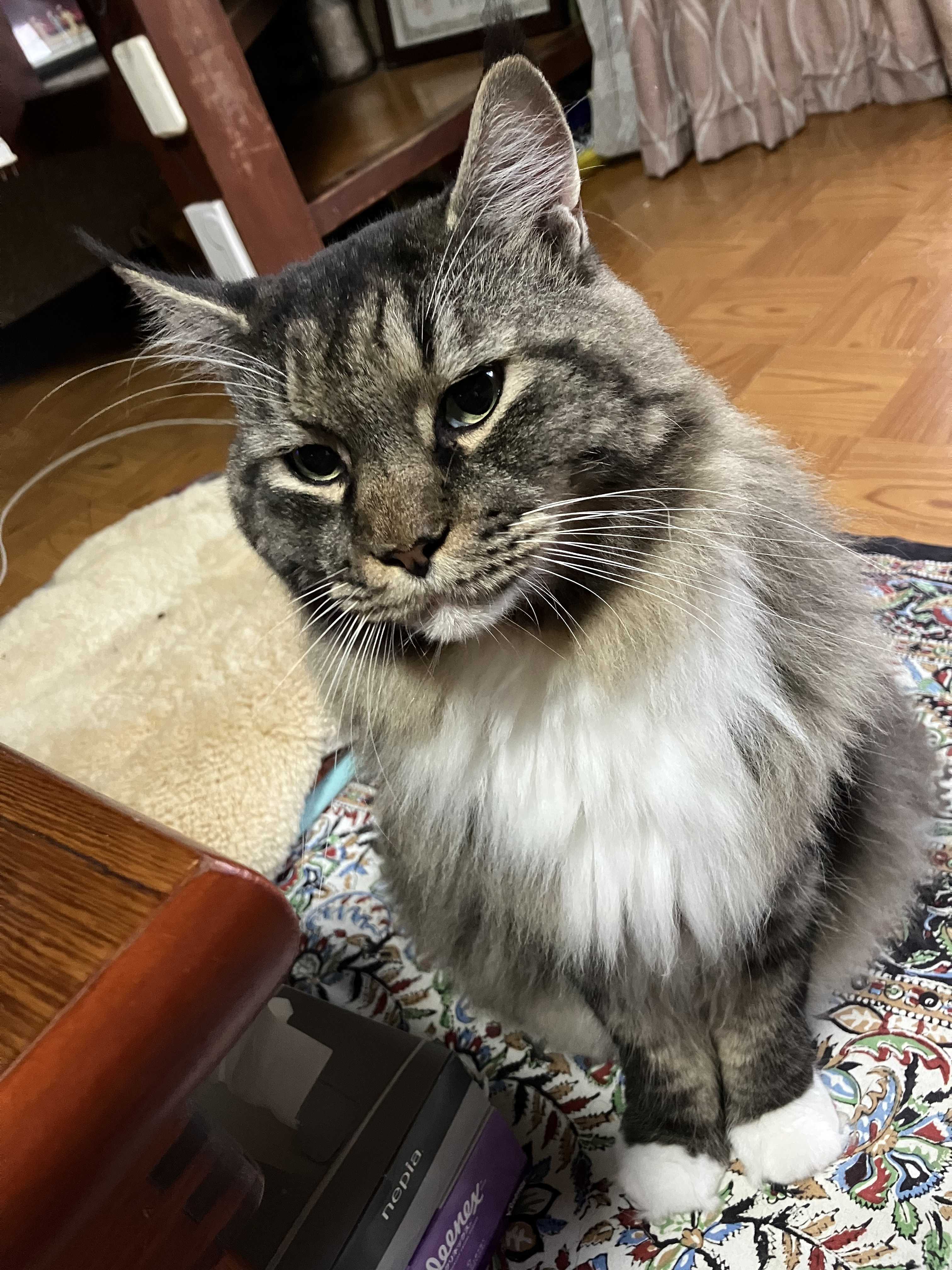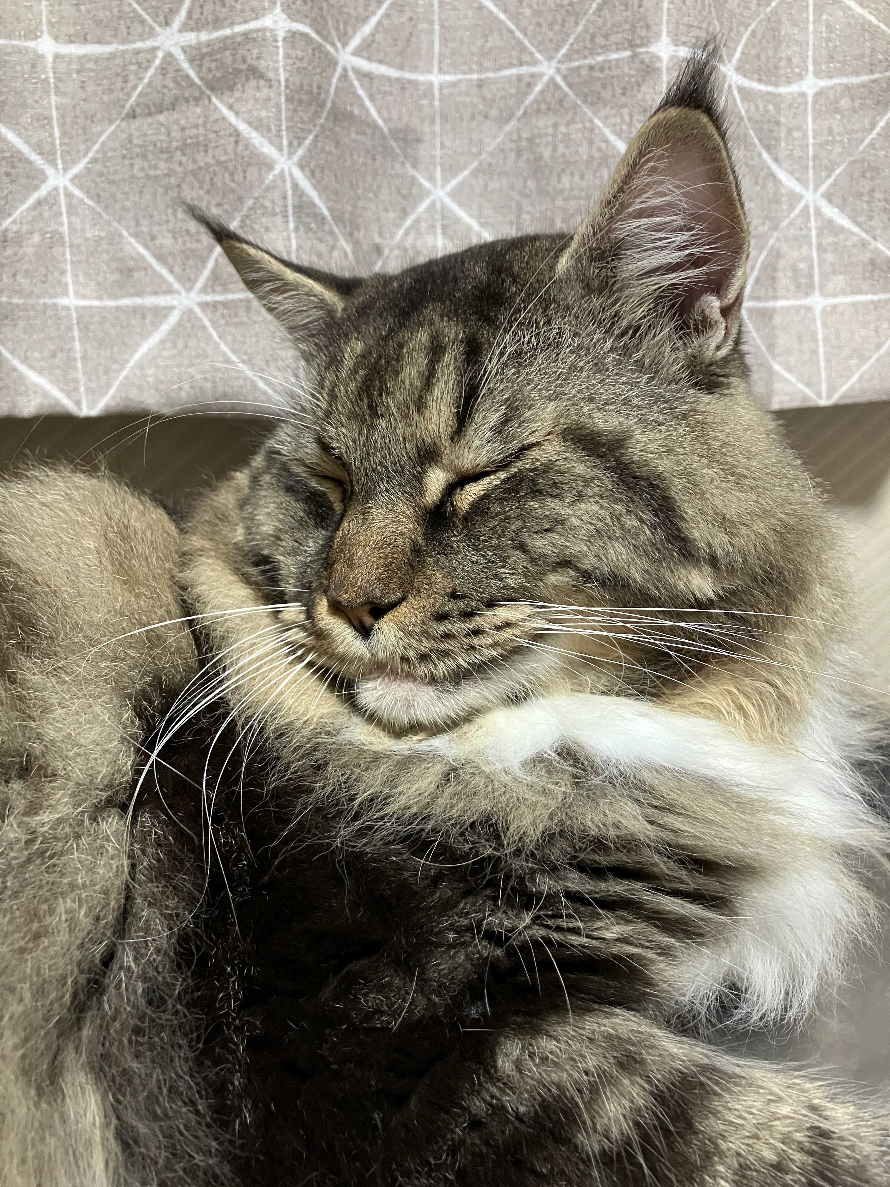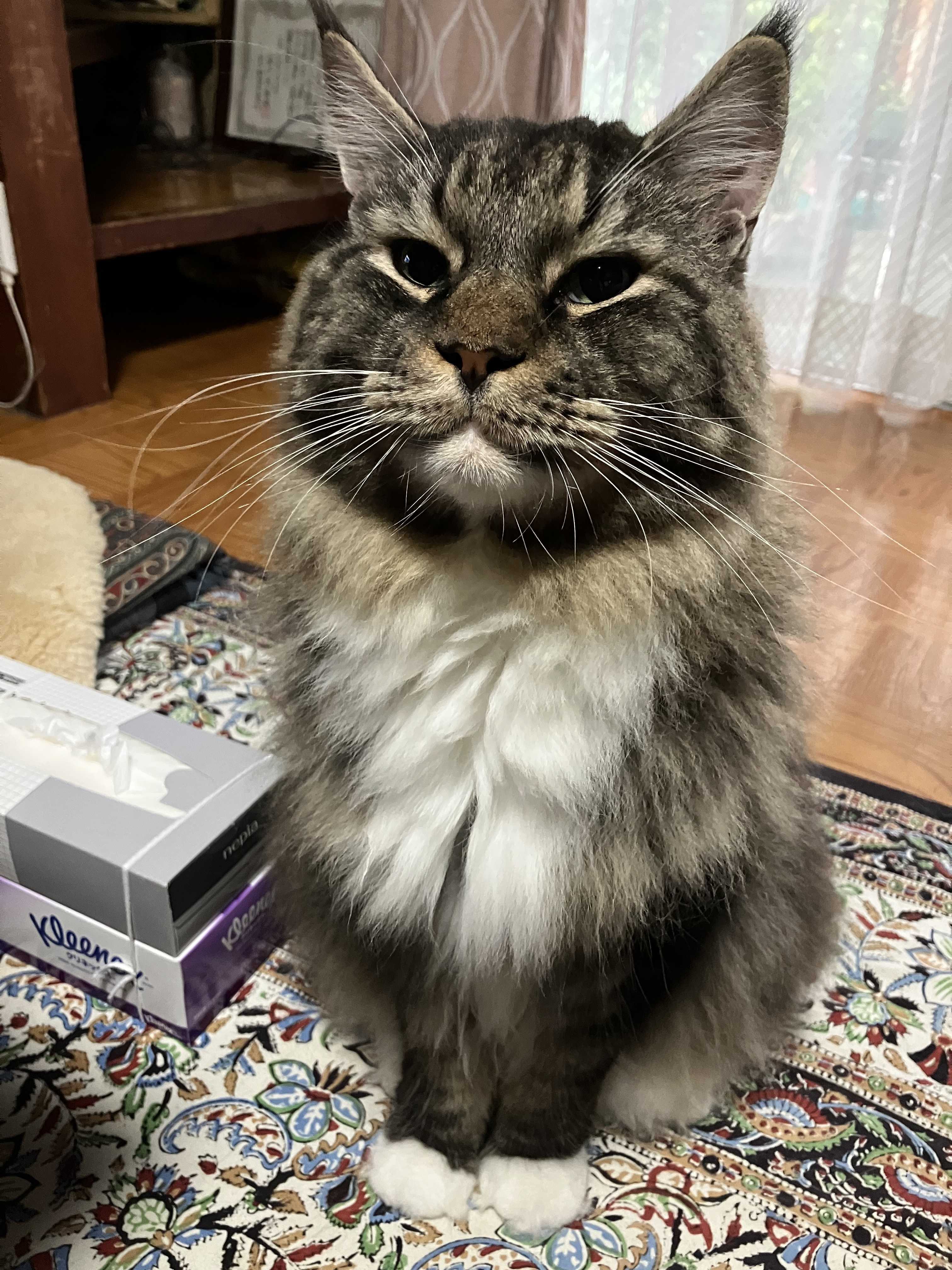 どうも鈴木さんです。おはようございます。今日は気持ちのいい天気で良い昼寝日和ですにゃ。日に日に冬毛の量が増えてきてるような気がします。真冬は大型種だけあってほんとうにモコモコにゃんこになるんよね。