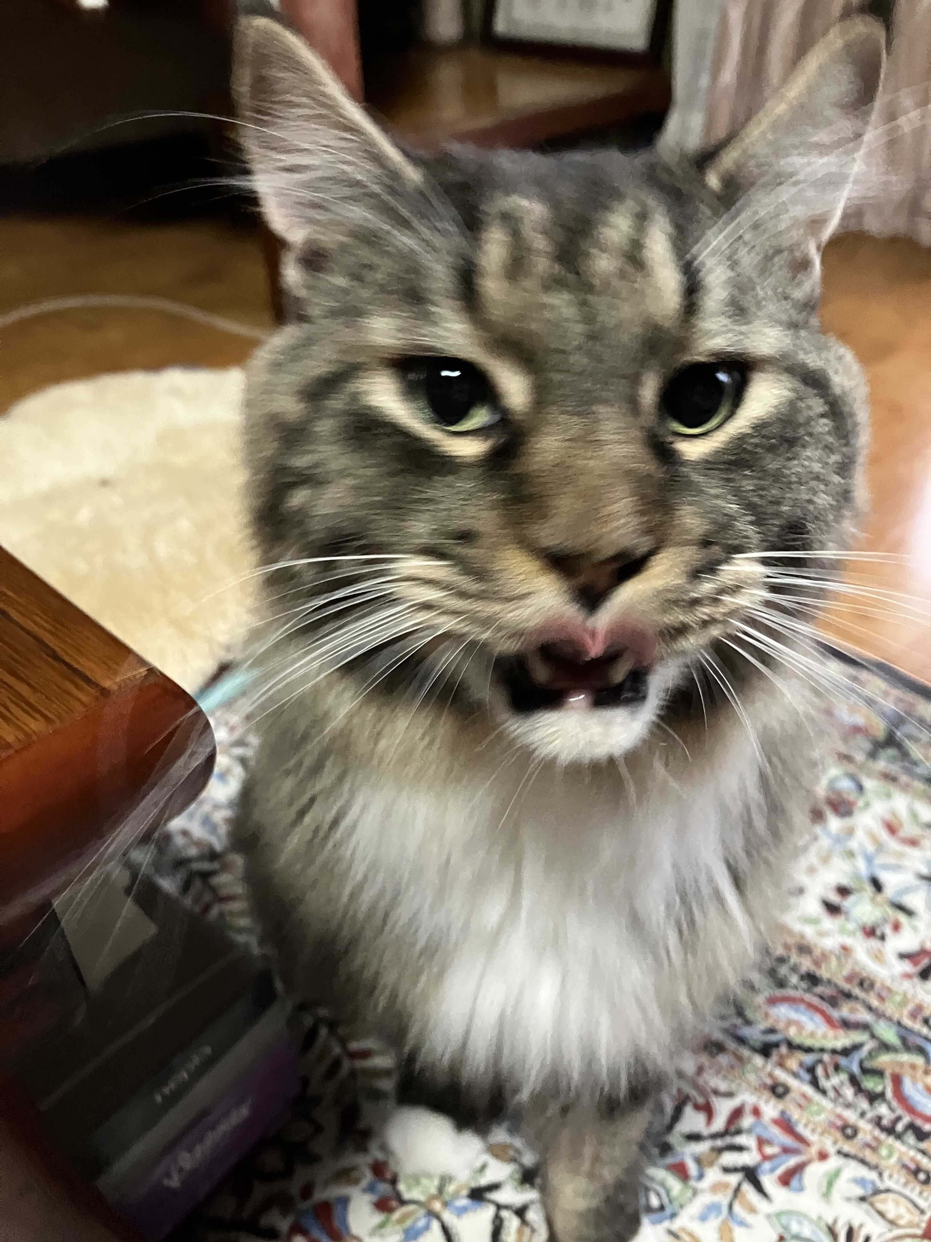よく話しかけてきますが猫語の理解は人類にはまだ早いですにゃん。