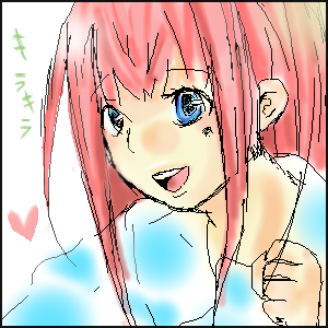 あ。絵は,莢芽ちゃんとやってる交換日記でかいたやつ。げふん使いまわしー(どかーーーん