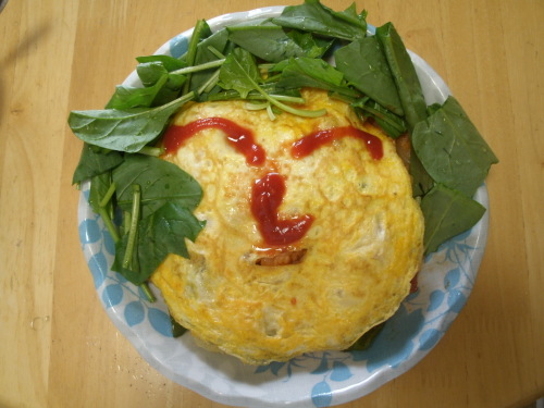 今日は空全体に薄い雲がありますが、太陽のまわりは青空で、お散歩には良い日ですね。お昼は、可愛い顔の「オムライス」を作りました。髪の毛はサラダホウレンソウです。洗って、生のまま食べられます。↓ 楽天市場さんでの商品のご紹介です。【5000円以上送料無料】サラダ法蓮草〈サラダホウレンソウ〉1パック、100g前後↓ サラダホウレンソウの栽培セットです。タイニィタイニィプラント 小さなポットで育ててみよう!GD-341 【サラダホウレンソウ】【種子】タキイ種苗 2種のサラダホウレンソウミックス 20ml 【郵送対応】