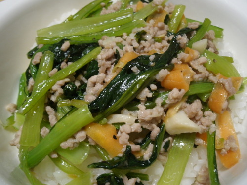 今日は午前中は雲がかなりありましたが、午後からは晴れてきました。夕方、お知り合いの方から「小松菜」を頂きましたので夕飯に使い、「小松菜とひき肉丼」を作りました。ブナピーと人参とニンニク、みりん、お酒、お味噌、胡椒を入れました。美味しかったです。簡単なので、また作りたいです。↓ 楽天市場さんでの商品のご紹介です。【お届け先・東京23区限定】【日本最大規模 大田市場商品】小松菜(東京産) 1パック250g小分け販売始めました!香川産 ブナピー(白しめじ)1パック しめじ体内でビタミンAに変わるベータカロチンをたくさん含みます。[有機JAS] にんじん特選品 (300g) 無化学農薬/無化学肥料/有機栽培/国産/オーガニック