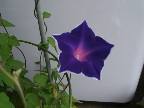 今日は午前中はまだ太陽が出ていましたが、午後になるとどんどん雲がわいてきて、真っ白になりました。5月2日の発芽した桔梗咲きアサガオが、やっと咲きました。嬉しいです。一番初めの種蒔きは2012年。そこから毎年、前年の種を蒔いていました。2014年は2つの鉢の合計で約30個粒蒔いて、発芽したのは2つ(1つの鉢に1つずつ)。今年は蒔いた種が全部出たぐらい発芽率が良く、ビックリしています。最初よりは少し花が小さくなりました。アサガオの色ですが、最初は色々な色で咲いていましたが、2年目からは今年咲いた様な色の花ばかりになりましたね。↓ 楽天市場さんでの商品のご紹介です。桔梗の花を思わせる変わり咲き品種!一重から半八重咲きで小輪タイプ!花色は紅、青、紫、白の混合!【種】 【朝顔 桔梗咲き混合】(906-010)(春)キキョウの花に似た一重、半八重の変わり咲き1袋の採苗本数 約 10本