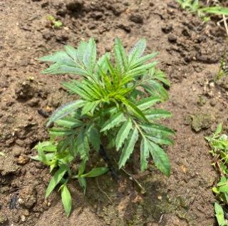昨年のこぼれ種から芽が出たのが大きくなってきています。