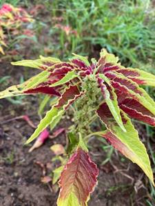 ハゲイトウは色づいた葉を観賞する植物で、本当の花はこの茎につくちっちゃなツブツブだそうで。