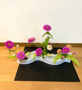 ちなみに水をいれているのは小原流の半円花器です。