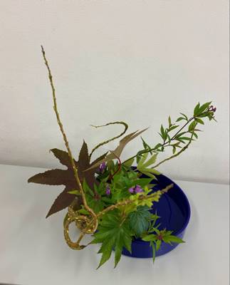 私は写景自然をいれるとき、いつも後ろにひく枝を主枝のような形でいれていましたが、手前に高くいれて景色を作る構成の作り方など、勉強になることばかりでした!