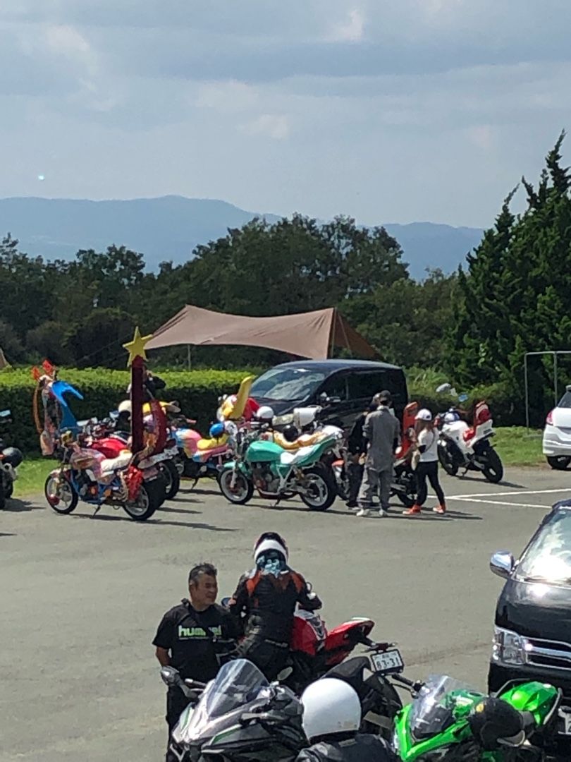 道中、これまた定番の阿蘇クシタニカフェで休憩。 この日は騒がしく、旧車会?らしき人らが集まってました。