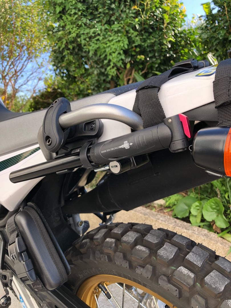 いつも、パンク修理キットを携帯してツーリングに行ってますが、空気入れが無かったので、セローに装備しました。