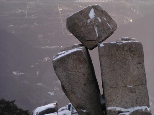 2009年1月1日午前4時、登山前。鈴鹿スカイラインのトンネル内で。ナトリウム灯の下で写したのでまるで画像処理したように見えるがありのまま。 夜明けの三重県四日市市の夜景。奇妙なことに東の空から真上にかけては晴れ、頭上には星がまたたいているのに空の西半分は厚い雪雲に覆われている。 西半分はこんな感じの吹雪。ロープウェイが雪雲の中に吸い込まれて行く。もちろん終点の山頂から初日の出は見えそうにない。見えるのはこの時点で中腹にいる人間だけである。 姿を現した今年最初の太陽。東の空は見事にオレンジ色に輝いているが西の空から舞い落ちる雪はチカチカと光るダイヤモンドダストとなって降り注ぐ。信じられないほど幻想的な光景。 突然、伊勢湾が光り輝く。雲の中に隠れた太陽が海面に反射。まるで海の中に太陽がゆらめいているよう。こんな天体ショーを見たのは生まれて初めてだった。