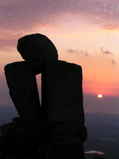 ブログの女性訪問者に圧倒的な支持を得ているberry氏が名古屋の某所で女性訪問者の1人と密会するという情報を得た。イケヅラと誠実さという表の仮面を併せ持つberry氏だが彼はナニをするのかわかったものではない。その女性が一体誰であるのかを確認しつつ同時に彼女の操を守るのが任務であると感じた僕は仕事が終わってから大急ぎで東名高速を飛ばし密会場所に潜り込む50m手前の路上で2人をキャッチした。そのお相手とは何と!何と!何とっ!ズバリここだけで暴露してしまうがこのお方であった!その後、彼らに合流し3Pでどんちゃん騒ぎである。詳細はココでは割愛させてもらう。コウフンが抜け切らぬまま残念ながらお開きの時間となり僕は深夜を過ぎた時間ではあるがberryくんを誘った。「今から山に登りに行って日の出見ようや」というわけで冒頭の画像である。御在所岳のダイスストーン(正式名称:地蔵岩)で太陽が昇って来るのを撮った1枚。この大自然の神聖な朝に清められてberryくんの邪悪な心が浄化されるのを願ってやまない。(徹夜明けのため記事に多少のブレがあることをご了承下さい)