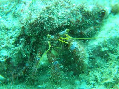 満喫の2ダイブを終えタンクを「みうら」さんに返しに行っていろいろと情報収集!近所の温泉は?ベルリーフ大月!車で20分くらい500円でゆっくり出来ます!「ばあ浜」のほかにここら辺でセルフできるビーチポイントは?「勤崎」!よし明日はそこへ行こう!場所を教えてもらい、確認のために下見に!がエントリーが難しそう!階段をかなり上り下りしなければならない・・・ちょっと考えよう!明日も「ばあ浜」でいいかな???って感じで今日も「ばあ浜」に決定!Dive No.383竜ヶ迫 ばあ浜Dive Time 75min. Max Depth 20.6m Water temp 25.0℃ Clear 10m昨日と同じポイントなので見れる魚はほとんど同じ!少し水深を深くとってみたけど・・・ゼブラガニ!イイジマフクロウニにやラッパウニに共生してるから見つけやすいですね^^裏返すとそこにいる!ってなかなかいないんですが・・・こんな景色も見れます!珊瑚が群生していてその上を下を小魚たちがあっちいったりこっち行ったり!透明度がいまいちなのが残念です!Dive No.384竜ヶ迫 ばあ浜Dive Time 76min. Max Depth 25.8m Water temp 25.0℃ Clear 10mワイフの300本記念ダイブ!!2002年から一緒に始めてなんだかんだの300本です!ひっそりこっそり2人のお祝いになりました^^潜った数の1/10くらいしか魚の名前を知りません・・・思い込みが激しく自分の生まれた室戸の海が世界一と思ってる!1ダイブで3回はする!ガラスハゼもいました!サビウツボ!初めて見ました!目がかわいいです^^ワイフリクエストのテンスの幼魚はこのダイブではみれませんでした!とりあえず2人で1000本は潜りたいね!