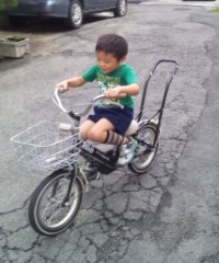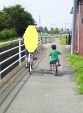 コマなしの練習をしてすぐに少し乗れるようになっていた諒真 しばらくしてなかったんだけどいつの間にか乗れるようになっていました 「おかあさん見ててやー 諒真すごく早く乗れるねんでー」と 言うので見ていると 本当に早くて上手に乗れているので びっくりしました ちょうど、16インチのお古の自転車を頂いたのでそれを諒真に そして、今まで乗っていた14インチを謙真に 謙真は、おばあちゃんのところへ遊びに行くと私の甥っ子が乗っていた自転車を借りて『ギ~コギ~コ』と嬉しそうに乗りこの間までは、まだペダルが回せなかったのに 14インチの自転車にコマをつけてあげると謙真もスイスイと乗っていて「いつの間に乗れるようになったん」とこれまたびっくりでした 2人ともとっても上手に乗れるようになったねッ