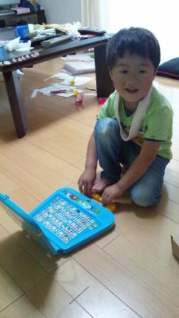 事情があって・・・3歳のお誕生日に間に合わなかったプレゼント 午前中に届いたので早速、渡すと・・・「うわぁ~トーマスや」と大喜び トーマスでお勉強して下さいねッお兄ちゃんに取られたくないので・・・トイレに行きたくなると「おかあさんこれ守っといてなッ」と私に預けて行く謙真でした