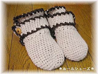 バザーも終わって、自由な時間ができたので、ちょっとずつハンドメイド再開してます。先日幼稚園の保育参観があって、スリッパ持参だったので、Seriaで調達してきました。それだけでもかわいいけど、シンプルすぎたので、ちょっとだけ手を加えてみました。このままでもシンプルでいいんだけど、これに、モチーフを編んで付けてみました。どこに付けようか迷って左右アンバランスな位置につけてみました。最初はどうかな?って思ったけど、これはこれでアリかな?