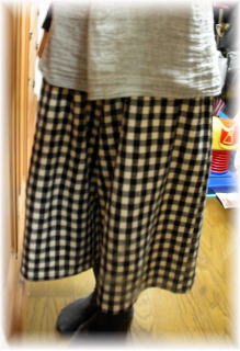 冷え性の私にとって、レッグウォーマーと並んで必須のアイテムが、ルームシューズです。毎年編んでるんですが、必ずシーズンの終わりには左右どちらか一方のかかと部分がすり切れて穴が開いてしまいます。で、今年も編みました。これ↓毎年違う形を編んでるけど、今回のは足首まであるので、今までの中で一番暖かいかも。履き画がこちら↓でも、毛糸のルームシューズは滑りやすいので要注意です。足裏に滑り止め付けなきゃ。何かいい方法ないかなぁ・・・編み図は、雄鳥社の「ふんわりアイテム 手編みの小もの」より個人的に雄鳥社さんの手編み本好きだったのに、倒産してしまいましたよね・・・もう手に入らない本もあるのかな?今回の本は図書館で借りてきました。懲りずに今日も着画でコーデ紹介しますね♪*タートルT・・・イオンのヒートファクト(880円)*ダンガリーワンピ・・・しまむら(970円)*チェックギャザーパンツ・・・ハンドメイド*ペチパンツ・・・ハンドメイド*ネックレス・・・しまむら(390円)おお~。今回もかなりのプチプラコーデ。今イオンが4日間だけのセールと題して、衣料品が10%offになってるので、試しにヒートファクトを買ってみました。980円の10%offで、更に、近所のイオンはレジ袋不要だと2円引きしてくれるので、880円で購入できました。本家のヒートテックを試した事がないので良さの比較は出来ないけれど、これはこれで暖かかった気がします。ダンガリーのしまむらワンピは、今年の夏のセール品。夏物?春物?だけど、重ね着すれば、違和感無く着られます^^この写真だとほとんど見えないけれど、チェックパンツの下に、裾レースのペチパンツを履いてます。チェックパンツがちょっと薄手なので、ペチパンツを重ね履きすると暖かかったです。レースチラ見せのつもりだったけど、あんまり見えてないですね^^;