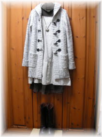 ”寒くなってきて着るものがないから~”と理由をつけてまたまた服買っちゃいましたまずは、近くのイオンの中のLBCで、Sun Valleyのエプロンワンピと羽織ものを。二つともセール価格になってて、各4,900円→各2,900円で購入できました。二つとも多分同じ生地。起毛素材で暖かいですよ。↓羽織は多分これと同じ形。同じものが見つかりませんでした・・・私の購入品は無地のブラウンです。エプロンワンピはこちら↓のベージュ↓こちらタイムセール中ですLBCでこのベストも見てきました。ステキだったけど、当然定価だったので見るだけで帰ってきました。早くセールにならないかな・・・でも、セールまで残ってないだろうな・・・・しまむらでは、チュニック丈のトレーナー(970円)、ブラックウォッチのレギパン(1,270円)、レッグウォーマー(780円)を購入。トレーナーは松本伊代さんプロデュースらしい。松本伊代さんプロデュース品けっこう色々ありましたよ。このトレーナー、970円だけど、花柄は刺繍だし、ポケットの中もチェックで配色されてます。でも、ちょっと首周りが柔らかいので洗濯したら伸びちゃうんじゃないか心配レギパンは適度なピッタリ具合で履き心地いいですよ。レッグウォーマーはgrinのこれ↓にちょっぴり似てます。これ↑っぽく撮ってみましたぽいでしょ?でもこれ、けっこう長さもあるし、厚みもあるので本当にこうしてブーツインするとブーツがパンパンになるか、上の方が余りすぎてバランスが悪いです・・・写真ないけど、この他に、ネックレスとタイツも購入して、総額は上のSun Valley2着よりも安かったですしまむらでは、KOOS風のブーツもありました。かなり惹かれたけれど、今年はすでにブーツ2足購入しててブーツだけでも家に5足もあるので後ろ髪引かれながら買わずに帰ってきました。こんな感じのでしたよ。 右のバックリボン風のブーツは1,470円に値下げされたのですごく迷いましたまだまだ物欲おさまりそうにありません・・・安物買いの銭失いにならないように気を付けなきゃ。