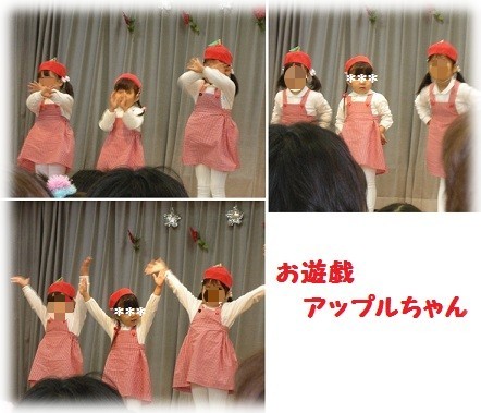 今日から幼稚園も小学校も冬休み。今年も残りわずかですね。今年は入園と入学が重なって、本当にあっという間に1年が過ぎていきました。また、幼稚園では役員もやり、自分にとってもいろんな変化(成長?)の年でした。でも、一番成長したのはNachaかな?先日、幼稚園でお遊戯会があり、Nachaの成長ぶりにびっくりしました。お遊戯会の様子をチラっと(たっぷり!?)紹介。。。まずは、お遊戯から。かわいい衣装で、上手に踊れていました お次は、劇。絵本の「どうぞのいす」を←こちらですうさぎ役だったのですが、最初から最後まで舞台に出ずっぱりで、セリフもたくさん(といっても同じセリフだけど・・・)あって、主役みたいでした。すごく一生懸命大きな声出していて、その姿にすごく感動しちゃいました 最後は、「大きな栗の木の下で」の合唱&合奏楽器はすずを担当。まだ今も相変わらず、登園時はなかなかバイバイできず泣いて別れることもあるので、当日は、”泣かないでいられるだろうか?”、”舞台に立っていられるだろうか?”ってすご~く心配していましたが、幕が開くと元気に笑顔で立っていたのですごくホッとしたとともに、その成長ぶりに感動しまくりでした。Nachaは意外と本番に強いタイプかも・・・しかも、劇の「どうぞのいす」のときは舞台上であくびするし。。。あなたはきっと大物になるわよ。。。ここまでできるように指導してくれた先生方には感謝、感謝です。幼稚園の先生ってほんとすごいな~って思います。