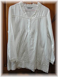 ここのところしまむらへ行くたび、あまりピンと来る物がなくて靴下やレッグウォーマーなどの小物だけだったり、何も買わずに帰るって事が多かったのですが、久しぶりにヒットしたものがありました。それが、こちら↓チラホラと春物も置いてあったので、これも春物なのかな?裾の刺繍スカラップと襟元のレースにやられました。↓ 裾スカラップに、レース付き、ピンタックも前後入って、やっぱり安心価格の1,470円でした。生地は若干起毛がかった、地の厚い生地で、今の季節は中にタートルTと重ねてもOKだと思うし、もう少し暖かくなってきならこのままでもいいですね。ちょっと前に、SM2のセールでリボンカーデを購入したので、それと、自作のギャザーパンツを合わせて、こんな↓コーデなんてどうでしょうか?ちょっと重いかな?シンプルに、スキニーとかロールアップデニムのほうがすっきりするかな?ちょっと話しがそれますが・・・週末に髪を切りました。かなりバッサリと・・・ (うわっ、鏡きったな~)何か心境の変化でもあったのか?いえ、いえ、そんなの全く。単純に長すぎて邪魔でうっとうしかっただけ。本当はもっとショートにしたかったけど、Ryoが絶対ダメっていうので、了解がもらえるギリギリの長さにしました。けど、この長さ、一番大変・・・すぐはねるからしっかりブローしなきゃいけないし・・・基本、ほったらかしのタチなので、ブローがいつまで続くやら・・・8日間は無料でお直ししてもらえるから、もっとしっかりパーマでもかけてこようかな・・・でも、この長さにしてよかったこと、コートのファスナーを上げるたびに髪を挟む事がなくなりましたこれいちいちうっとうしいし、痛いんですよ・・・