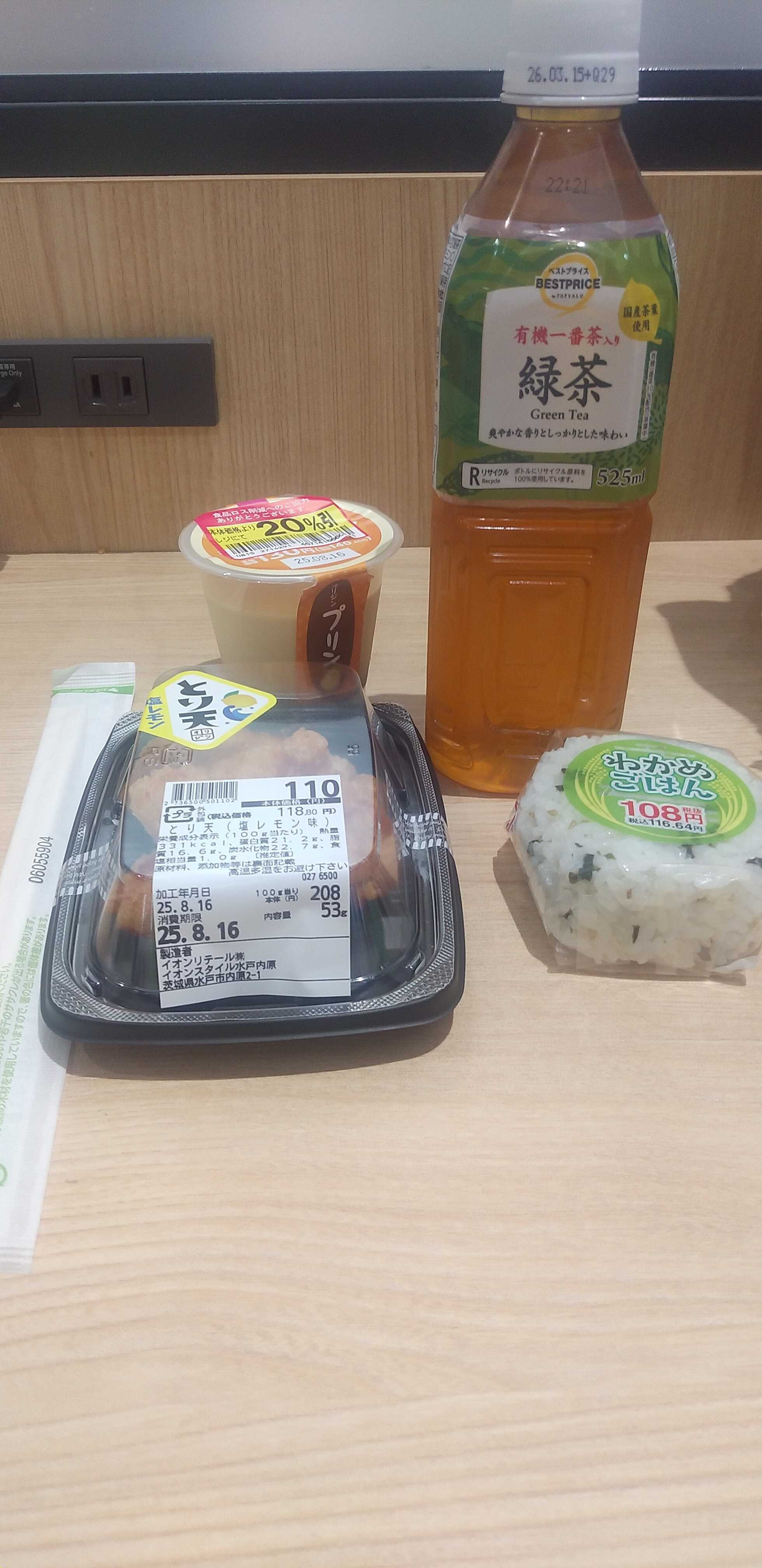🍮🍗🍙🍵こんにちは(´▽`)ノ夏休み8日目の土曜日、送り盆🔥です。🕙午前中、👻ご先祖様をお墓までお送りしました。午後は、某ご当地歌手のライブイベント会場までの、🔰送迎車運転手乗務です。ライブ終了まで、私は待機中~、、、ランチへ、某AEONイオンモールまで来ましたよ。今日のランチ🍙⬇⬇⬇マイウー👍ではでは、午後も一日ご安全に!!🍮🍗🍙2025.8.16.土