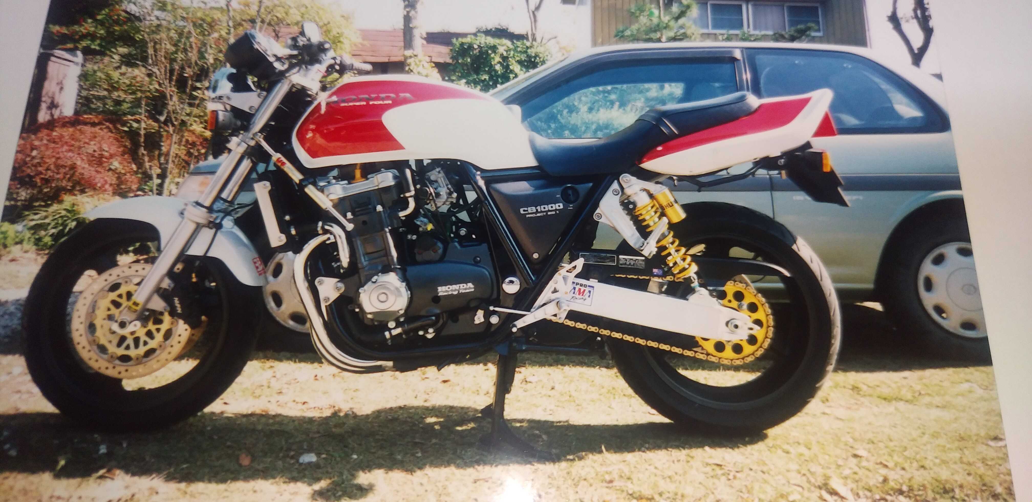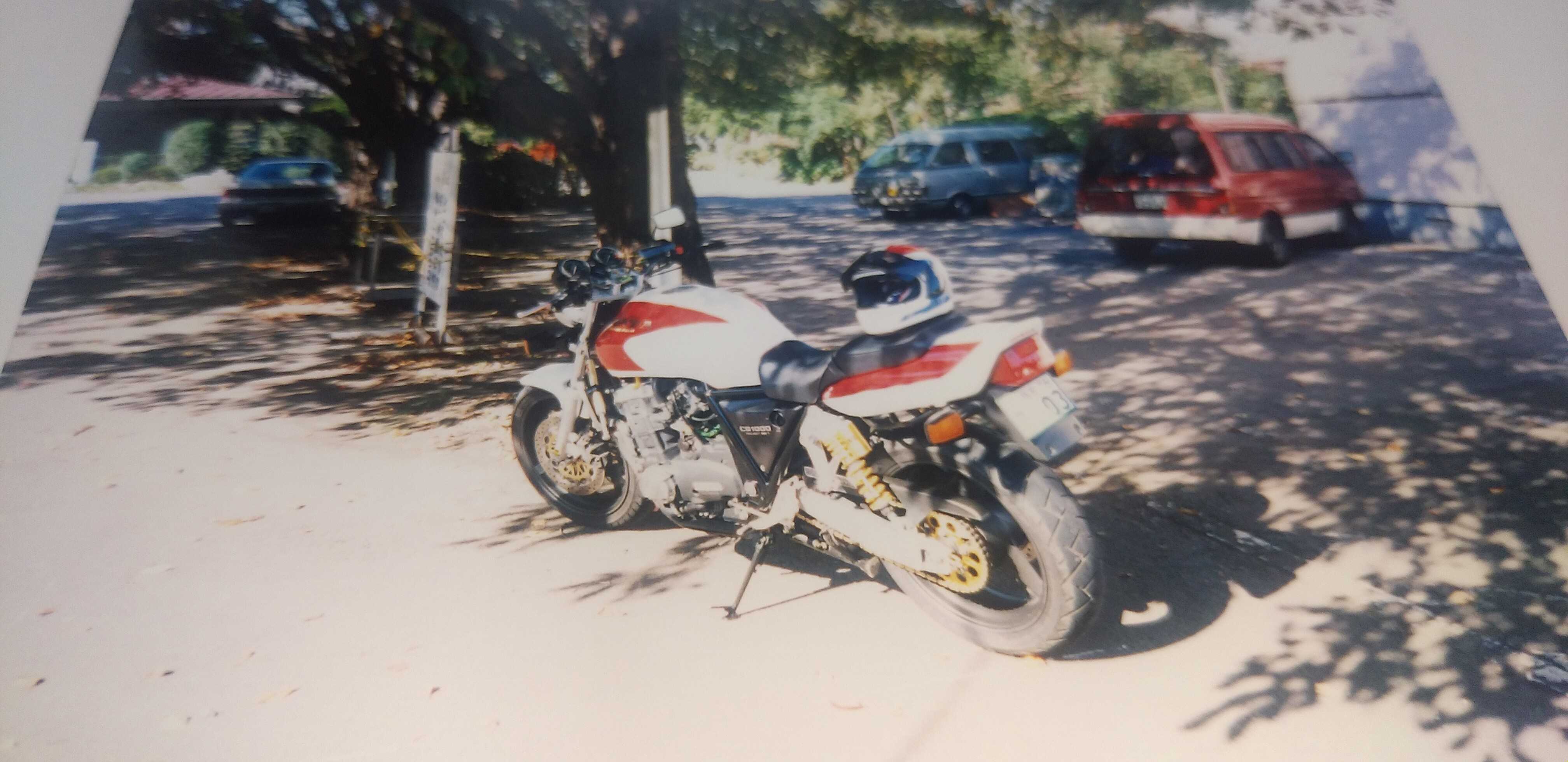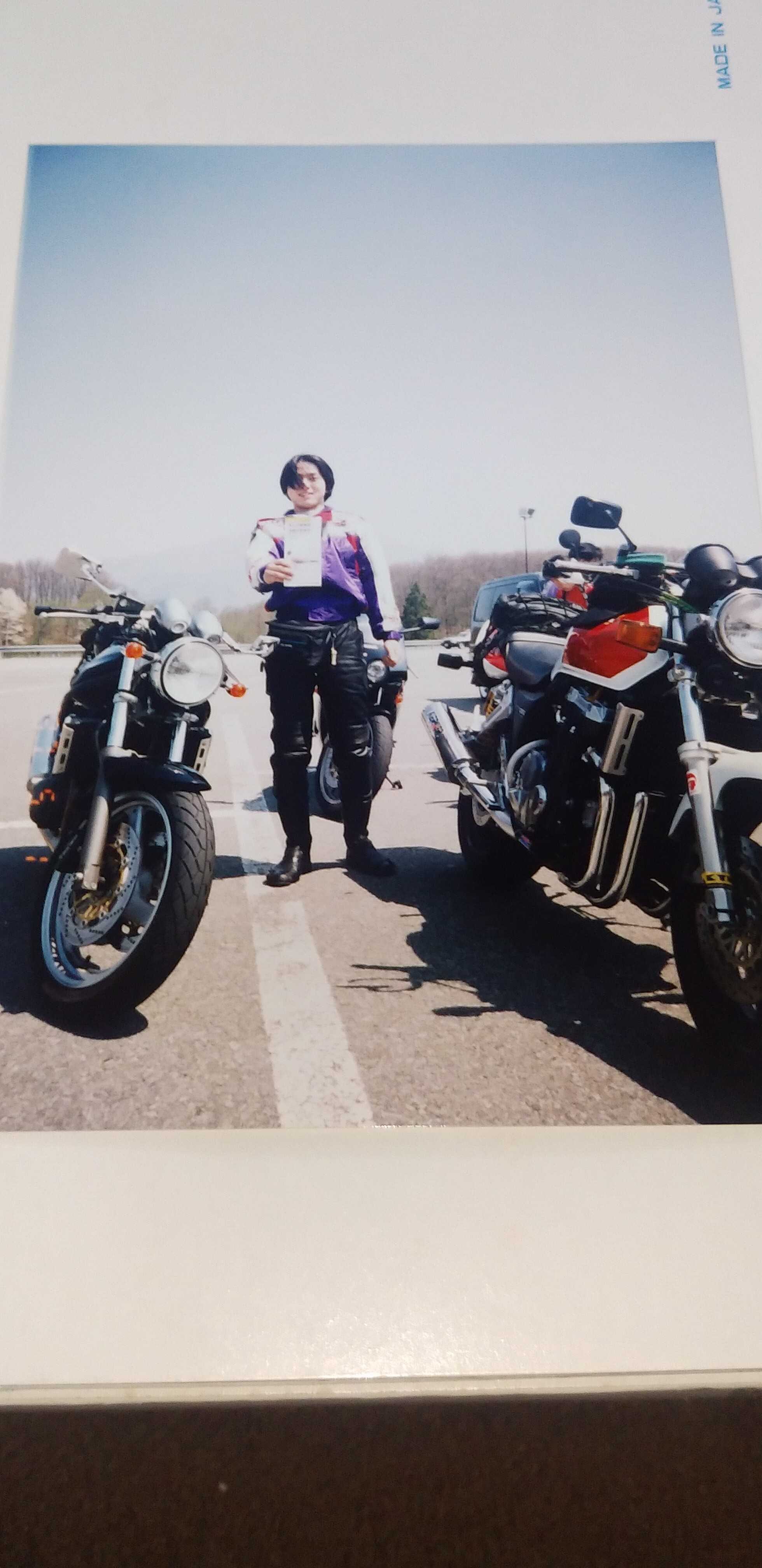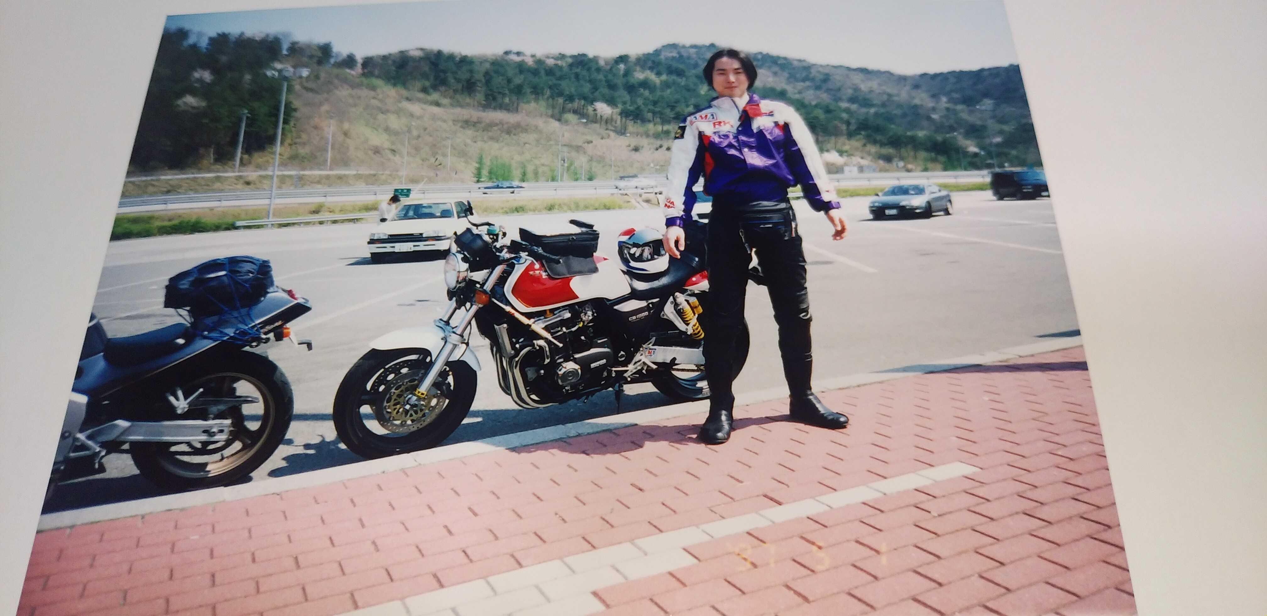 ☔☔☔こんばんは、🌛三連休初日の土曜日、雨☔💦ですなーさてさて、バイク紹介、私とBIG1です。1992年式、初期型のBIG1⬇⬇⬇CB1100Rを彷彿とさせる、赤白カラーとこのタンクデザインがしびれますな!!タンク形状も1100Rと似てデカイですね。当時のヤングマシンにデザインイラストが載っていて、コレはカッコイイ!!と、絶賛した次第です。その時は、4in1のストレートマフラーでしたが、販売時にはサブチャンバーが付き、マフラーデザインが変わってしまったのが残念でした。イラスト通りなら即買いしたかも!?一応、4in1の集合管ですが、センタースタンドの上にサブチャンバーが付いています。コレがデザイン的にイケ👍てない⤵私は、サイレンサーのみKERKERのスリップオンへ交換しました。この後、しばらくしてからKERKERのフルエキゾーストメガホン📣マフラーへ交換しますケド。私とBIG1⬇⬇⬇ロン毛👩の私です。当時のキムタクに憧れて!?イヤイヤ、✋ノリックですよ!!ノリック!!当時のノリックに憧れて、ロン毛にしていました。世間は、皆キムタクに憧れてロン毛にしていましたが、私は皆とは違います。ノリックですよ!!リヤタイヤを換える⬇⬇⬇純正は、170/60-18サイズですが、ミシュランタイヤのTX23 180/55-18へ交換しました。当時のハイグリップタイヤの最高峰グレードですよ。当時は皆17インチタイヤ全盛期ですから、18インチのハイグリップタイヤはほぼ皆無状態でした。が、ミシュランタイヤが18インチの180サイズを出していた事を知って、ありがたやーと思ったお話しです。ミシュランタイヤのカタログ眺めていて、偶然発見しました。こんなサイズ何のバイクに履くのかな???と、、、噂によると、ハーレーのV-ROD純正サイズだから出ていたとの事。180/55-18のぶっといリヤタイヤ!!⬇⬇⬇偏平率が下がり⤵丸みを帯びるタイヤになりました。レーサーマシンみたい!!思わずウットリ😍、君にクラクラ💫💕このまま眺めていたい、飾って置きたい、乗りたくない!!爆💥ヘルメットはスペンサーレプリカ⬇⬇⬇このデザイン、CBのデザインと合っていますね。当時のアメリカホンダデザインですが、スペンサーが好んでかぶっていた事から、スペンサーレプリカと呼ばれるモデルです。ヘルメット⛑️はアライのRX-7RRです。当時出始めのミラーシールドへ交換しました。うーん"(-""-;)"なつかしや~💦ではでわ、今夜もご安全に!!⛑️💇2025.10.11.土