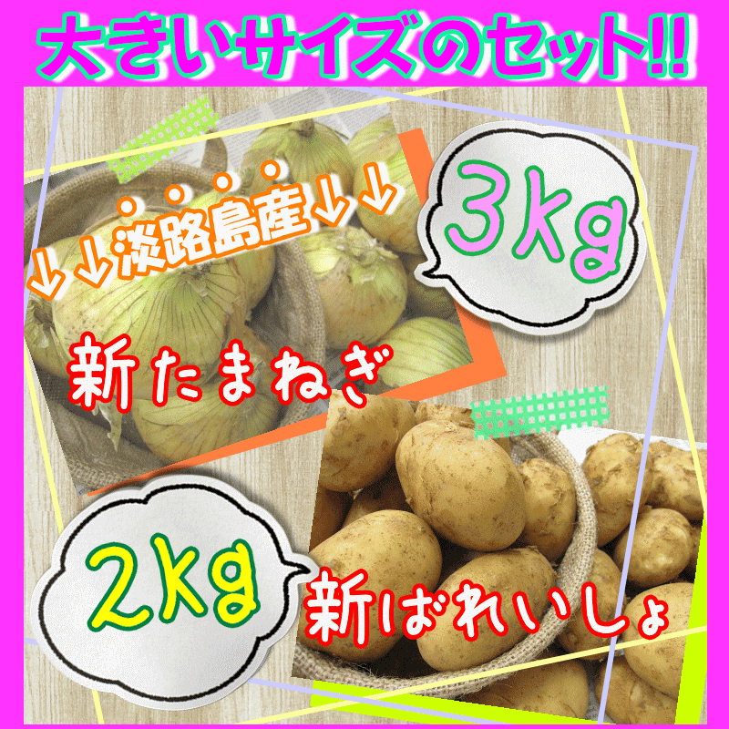 【うれしい大きさ!!!】新じゃが&【淡路の!!】新玉セット【新ばれいしょ2kg】と【新玉葱3kg】計5キロセット!!! たっぷり野菜を召し上がれ♪ じゃがいも・たまねぎお得なセット★【新馬鈴薯(鹿児島、長崎産)】【新玉ねぎ(淡路産)】のお得なセット!!!