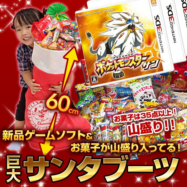 ポケモン サン ムーン も選べる 巨大60cm クリスマスブーツ サンタブーツ お菓子山盛り35個以上+ ニンテンドー3DS ゲームソフト3本入り <BR>ポケットモンスター サン ムーン 妖怪ウォッチ3 スキヤキ マリオメーカー 3DS アイカツ等20種から選べる