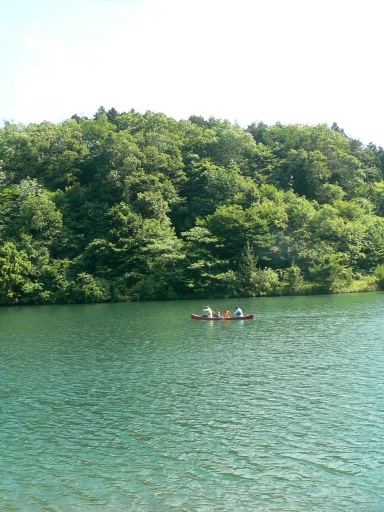 三重県最北端 いなべ市「阿下喜 あげき」の 日本料理 昭栄館 の料理長です。昼休みにいなべ市の隣の岐阜県上石津町の水嶺湖へ。(いなべ市は三重県最北部。岐阜県・滋賀県の県境にあります。)車で20分くらいでしょうか。山の中の静かな湖。日本昭和音楽村もございます。今日の目的は、カナディアンカヌー。(今回二回目です)↑ こちらでカヌーを借りて、ライフジャケットを着て乗船です。今日はメンズカヌー。長男 5歳 次男 2歳 オッサン 37歳 の三人で。とにかく静かで気持ちイイです。日曜日ですので、家族連れ・カップルもたくさんでした。次男には、「動くな! 動くな!」と言い聞かせておきます。とっても軽いカヌーなので、立ち上がったりすると転覆の恐れがありますので。途中から話しやすいよう、長男にはこっちを向いてもらいました。今日は風が強めでしたので、よく流されます。大人一人では、風に逆らって進むには、かなり気合が要りますね。大人二人 子供二人 計4人まで乗船できますよ。(前回は、妻も含め4人で乗船)30分で 一艘 1020円です。(みんなで)いい汗かきました。自然いっぱいのいいところです。オススメです。水嶺湖のカヌーのHPはコチラ。ページ下の辺りをクリック。夜は、地元阿下喜の「阿下喜温泉 あじさいの里」へ。車で1分。ココ最近、名古屋・岐阜・大阪など他県のナンバーも増えてきました。今日は感謝デー。40万人来場達成記念のようです。マイ箸、頂きました。今日は、回数券も購入。4000円で12枚。 一回あたり、333円。長男と次男と三人で入湯。保育園の間は、無料なので、333円で3人入れます。今日も楽しく入ってきました。阿下喜温泉「あじさいの里」のHPは、コチラ。最近の「いなべ」、テレビや新聞で紹介されたり、なんだか元気になっているように感じますね。これからもいなべの魅力、いろいろとお伝えして参りましょう! 料理長
